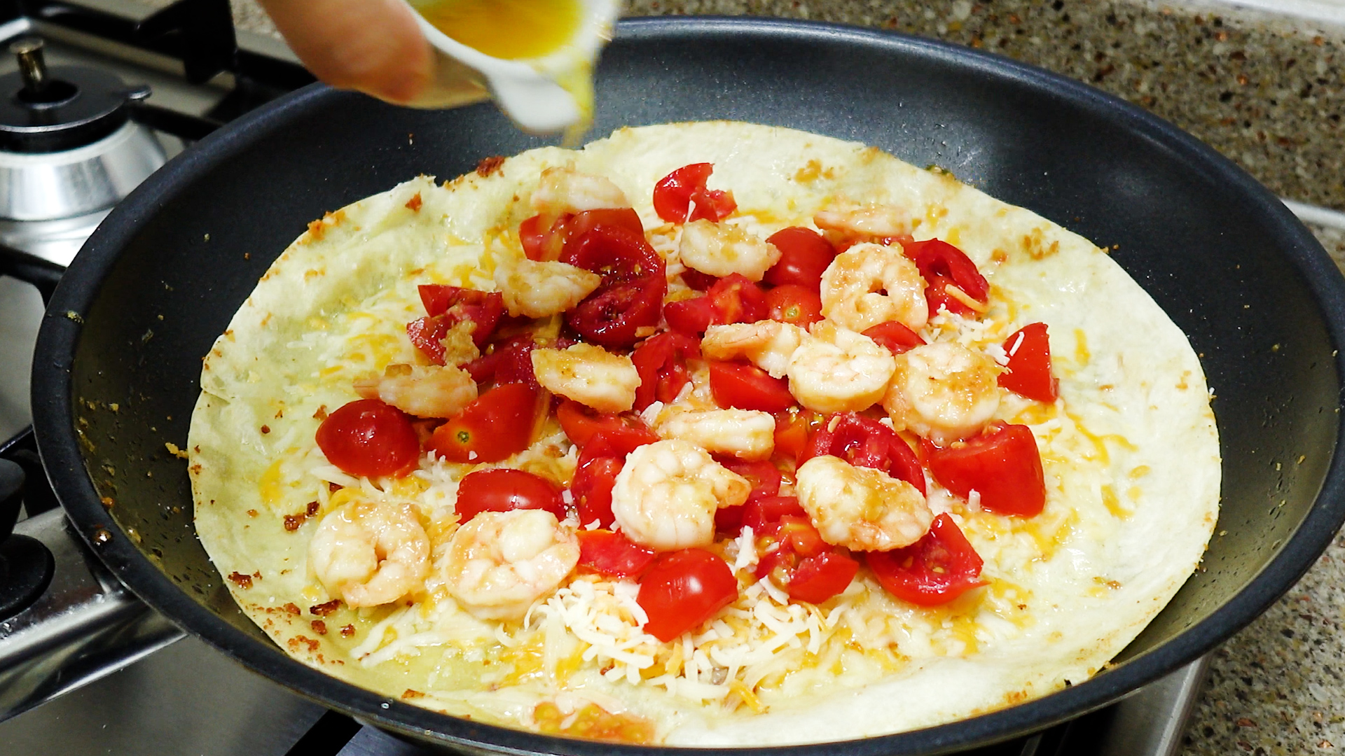피자가 완성되면 꿀을 넉넉하게 뿌리고, 후추를 살짝 뿌려 마무리하세요. 꿀이 새우와 치즈의 고소한 맛을 한층 더 살려주면서 달콤함과 짭짤함의 조화가 완벽한 꿀새우 또띠아 피자가 완성돼요! 혹시 다이어트하시는 분들이라면 꿀대신 알룰로스를 넣으셔도 괜찮아요.